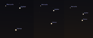 No sabemos qué le ha pasado a la diosa, en estos días. Pero se la ve volar, presurosa al encuentro con su padre. Vale la pena seguir su derrotero por el firmamento, mirando hacia el Oeste, apenas entrado el sol. Así se veía a Venus Afrodita hoy a la tarde...